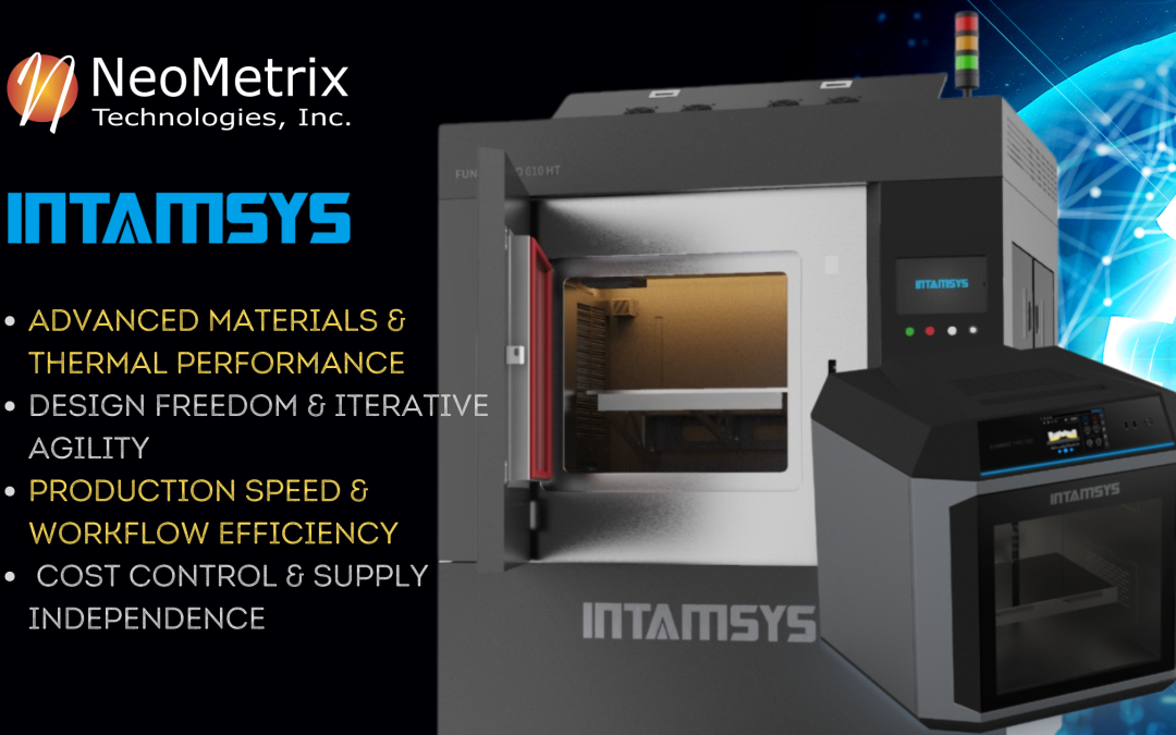 With solutions like the INTAMSYS FUNMAT PRO 610HT and FUNMAT PRO 310 NEO, supported by NeoMetrix’s training, service, and financing, high-performance manufacturing teams can: