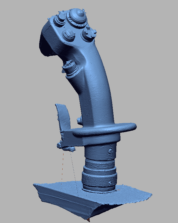 The client received a high-fidelity, dimensionally accurate CAD model of the F-16 flight stick, enabling exact reproduction for simulation hardware. The geometry matched the original within microns, ensuring authentic ergonomics and plug-and-play integration with their development pipeline.
