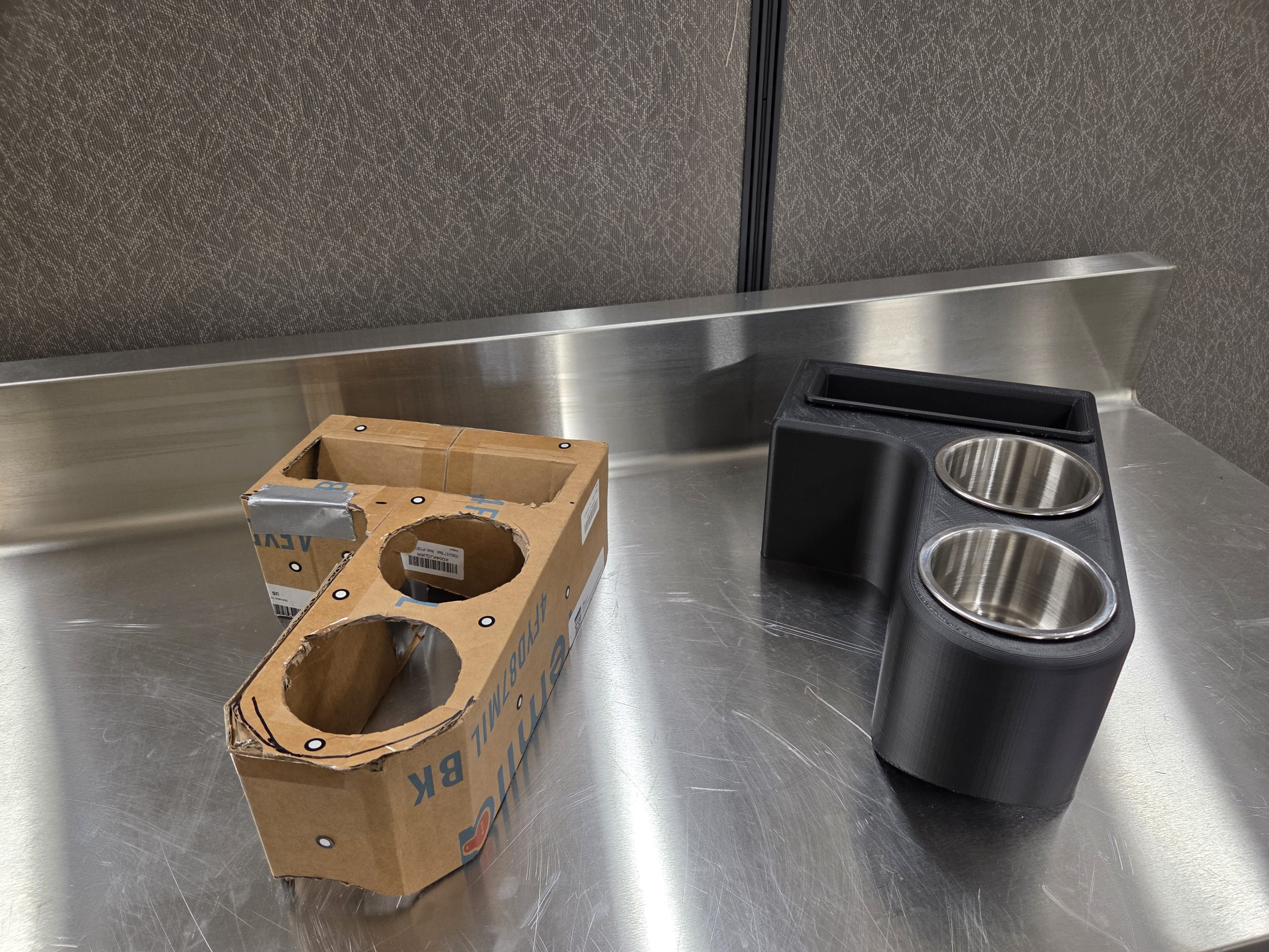 A physical model of the cupholder was rebuilt using cardboard to recreate the intended geometry and dimensions.