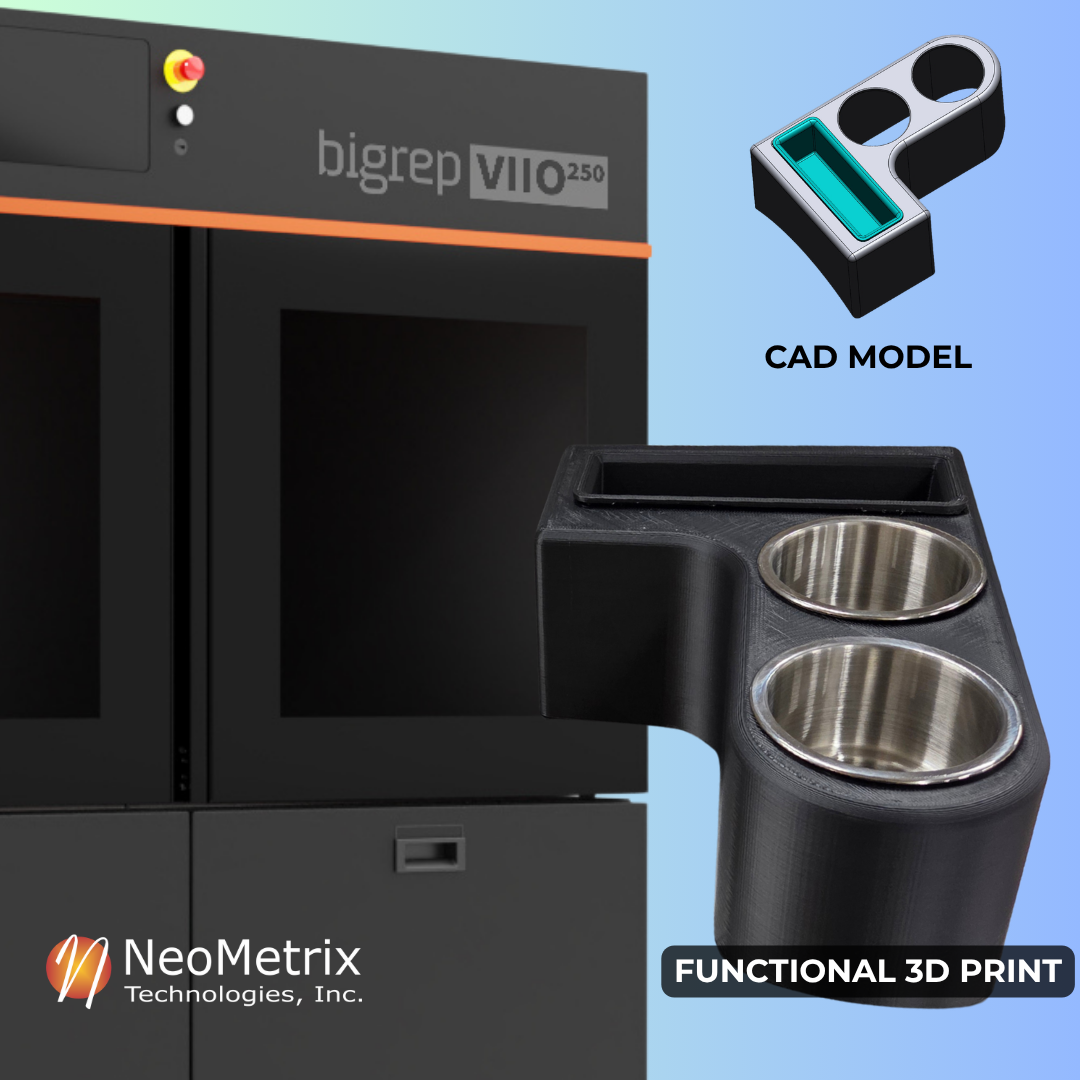 The final part was produced on the BigRep VIIO using a durable engineering material (material to be confirmed — commonly PRO-HT or PETG-based for interior durability).